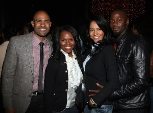 Actors Joyful Drake and Nadine Ellis of BET's new original show "Let's Stay Together" kicked it with Stephen Hill and Wendy Raquel Robinson. It was that show's premiere party as well. Loving Wendy's dress.